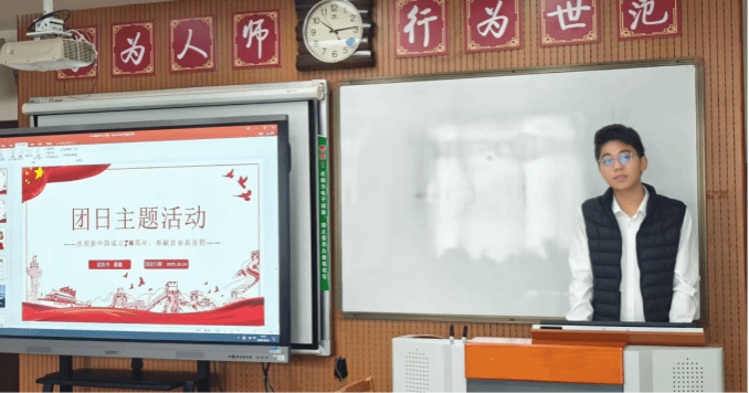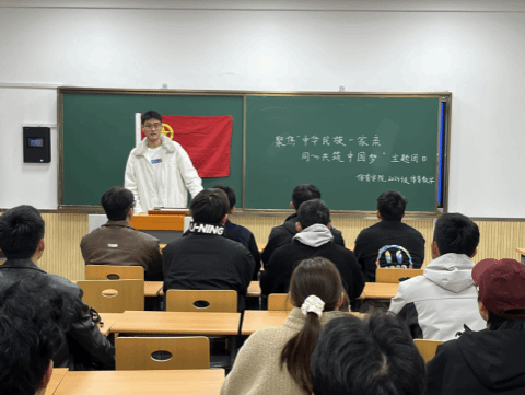 2025年10月24日,运动训练一班团支部“庆祝新中国成立76周年,奉献青春新征程”主题团日活动在文津楼1505教室举行。活动由团支书夏鑫主持,全班齐聚一堂,共叙爱国情怀,凝聚青春力量。