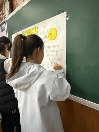 在“节粮实践小课堂”环节,团员们分组展开热烈讨论,分享日常节约粮食的小技巧。讨论结束后,团支部还组织了“光盘承诺”签名活动,大家在横幅上郑重签下自己的名字,以签名明志,以行动践诺,承诺从每一餐做起,拒绝“舌尖上的浪费”。