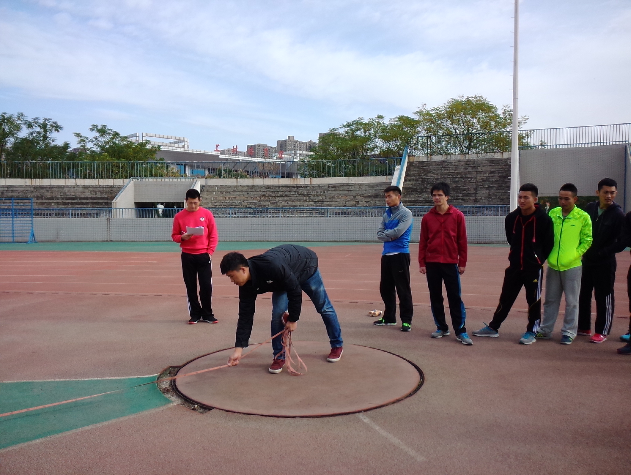 为响应《国家学生体质健康标准》的规定,2014年11月2日上午,我院在田径场开展了 “陕西师范大学体育学院2014年秋季素质达标赛”的测评与统计工作。出席本次工作的领导有我院党委书记王海彬、党委副书记朱海蓉、学工组王棣、樊岫珊、党琳琳、李钊。此次工作由团委承办,测试对象为我院2012级、2013级和2014级学生。