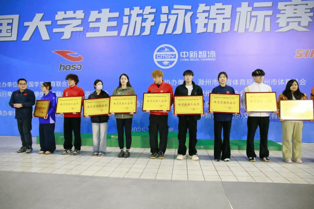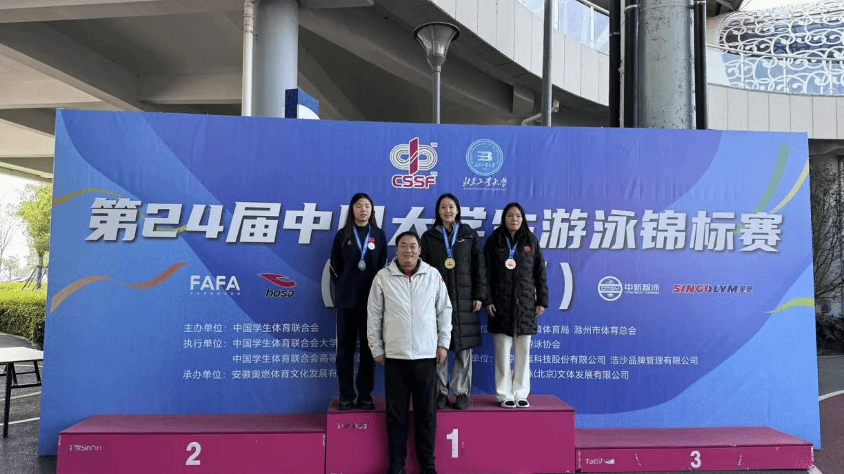 2025年12月7日至10日,第24届中国大学生游泳锦标赛(北方赛区)在安徽省滁州市体育中心游泳馆正式开赛。我校游泳队顽强拼搏、奋勇争先,最终夺得丁组女子团体总分第二名、丁组团体总分第四名,并斩获2金5银1铜的优异成绩。同时,我校荣获本届赛事的“体育道德风尚奖”,实现竞技成绩与精神文明“双丰收”。