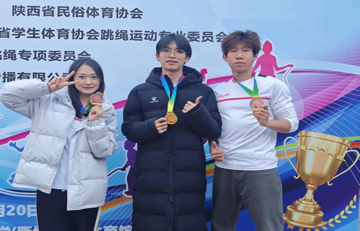 2025年12月21日,由陕西省学生体协跳绳运动专业委员会主办的陕西省大学生跳绳比赛圆满收官。我校少数民族体育鸿焰跳绳队参赛,在领队郑传锋、教练薛龙的带领下踏绳出征,与全省各高校学子同台竞技,凭借精湛的技术、默契的配合与奋勇争先的拼搏精神,在速度赛、接力赛等多个竞赛单元中崭露头角,一举拿下团体第六名的佳绩,更在单人赛场大放异彩,以1金2银3铜的亮眼成绩,将9项单人奖项收入囊中。