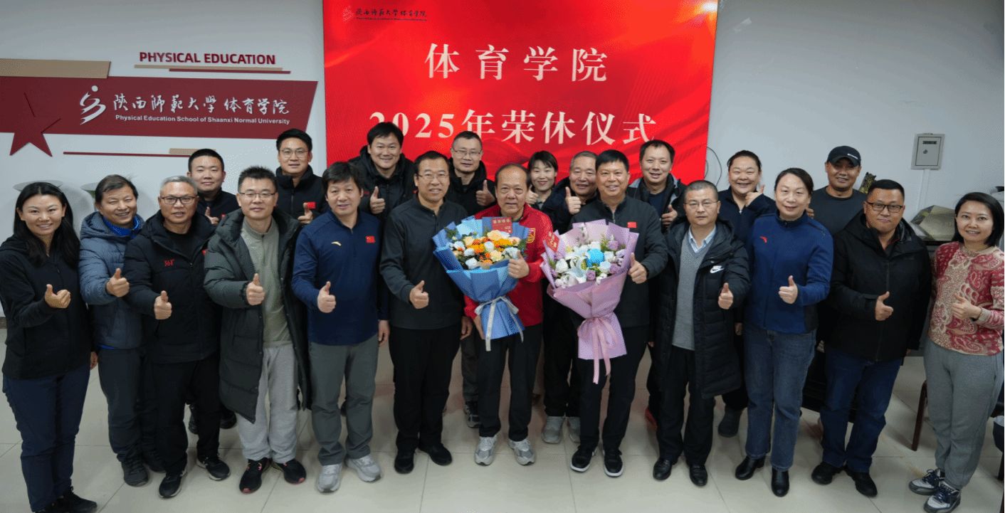 2025年12月31日,陕西师范大学体育学院为康喜来、张鲲两位教授举行荣休仪式。学校党委教师工作部部长曲洪刚、学院领导班子成员、学院系主任、教研室主任、教师党支部书记、青年教师代表及办公室、学工组全体人员齐聚一堂,共同送别两位为学院发展倾注心血的资深教师。