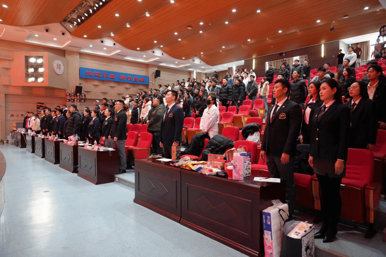 开幕式上,全场师生肃立,高唱中华人民共和国国歌,激昂的旋律点燃了现场氛围。陕西师范大学体育学院党委书记胡波发表致辞,表达了对赛事的期许和对同学们的美好祝愿。体育学院万炳军院长宣布比赛正式开始,郑传锋副院长、高元元副院长、张媚团委书记、体操与武术教研室主任薛龙老师等嘉宾莅临现场,为选手们加油鼓劲。
