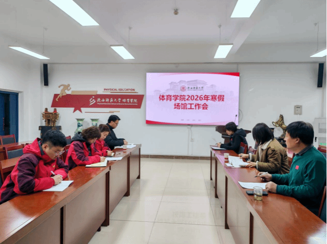 1月23日上午9点,体育学院在文津楼3125报告厅组织召开2026年寒假场馆工作会。会议由场馆办王新伟主持,副院长郑传锋、刘芳出席会议,场馆办全体人员、鼎晟物业公司各项目经理参加会议。