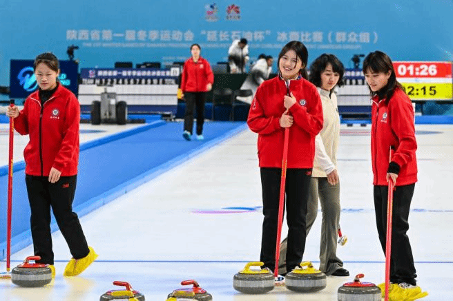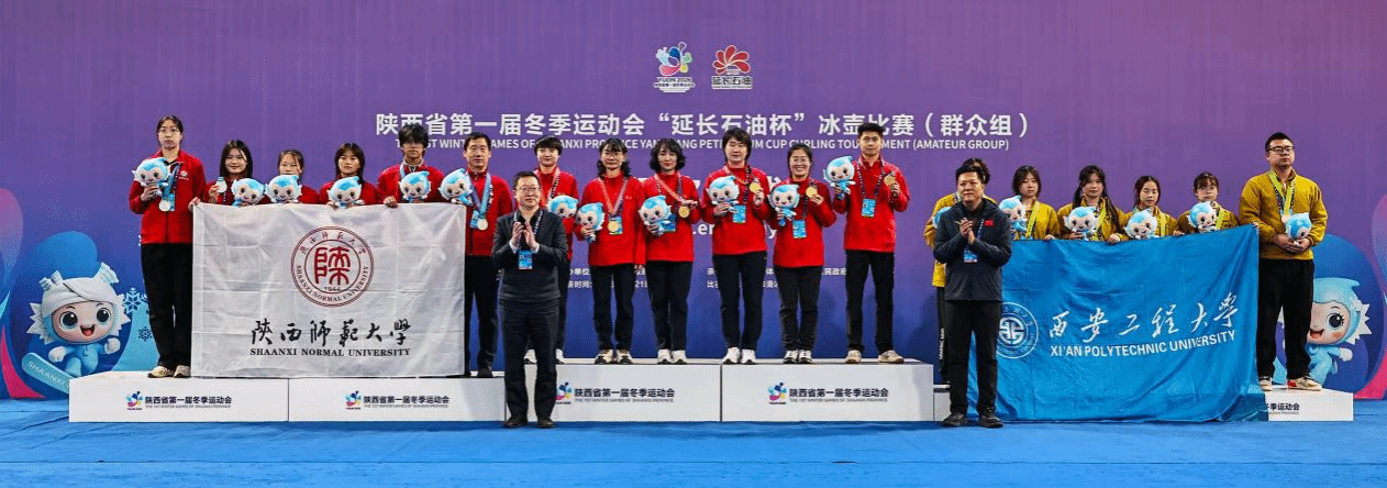 陕西省第一届冬季运动会(群众组)冰壶项目赛事于1月21日—27日在榆林市科创新城滑冰馆举办,陕西师范大学冰壶队由2024级体育教育专业顾浩鹏、王子涵等9名运动员组成,参加成年男子组和成年女子组比赛。经过激烈角逐,我校女子组最终收获一枚银牌,男子组获得第四名。同时获得体育道德风尚奖,取得了运动成绩和精神文明双丰收。