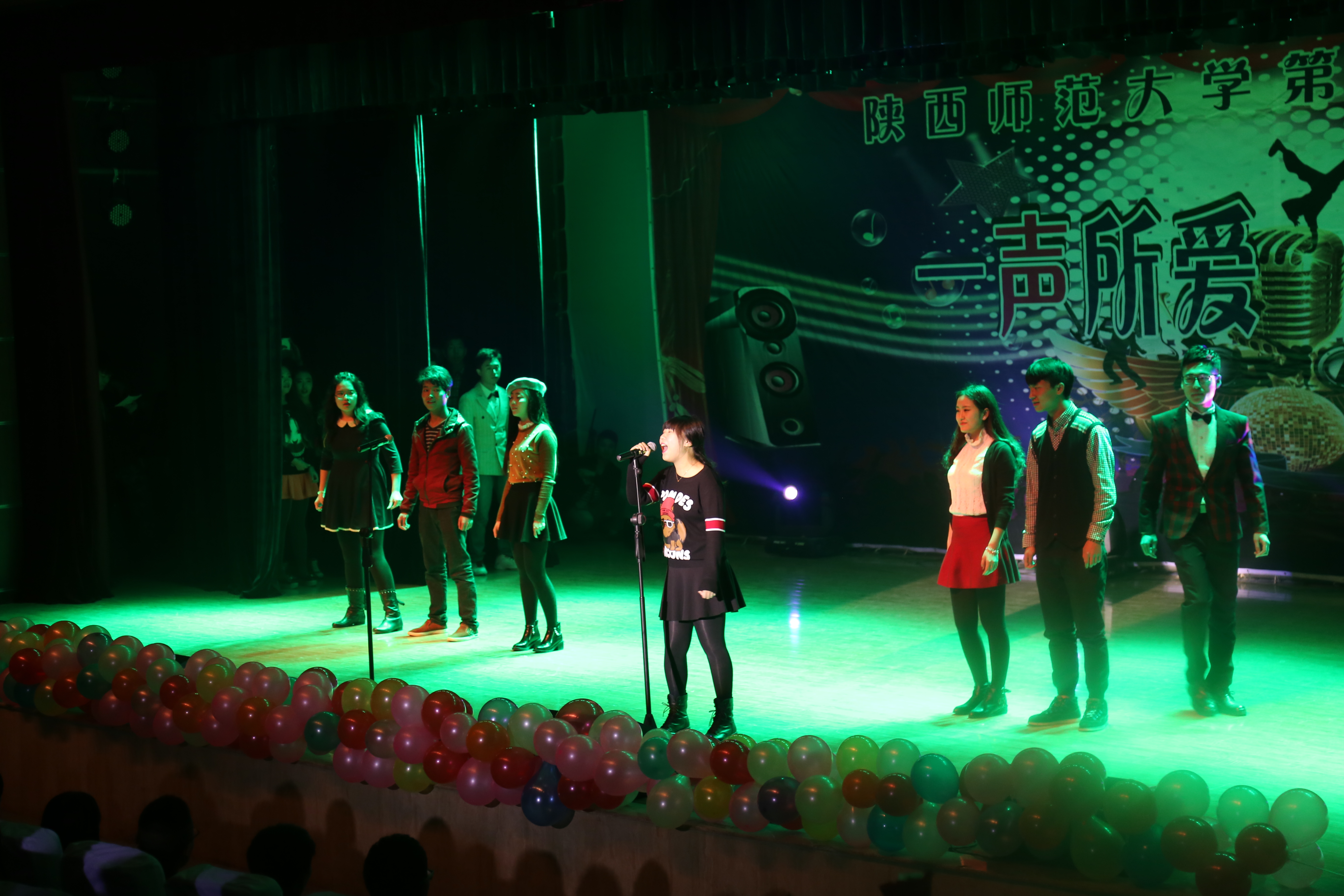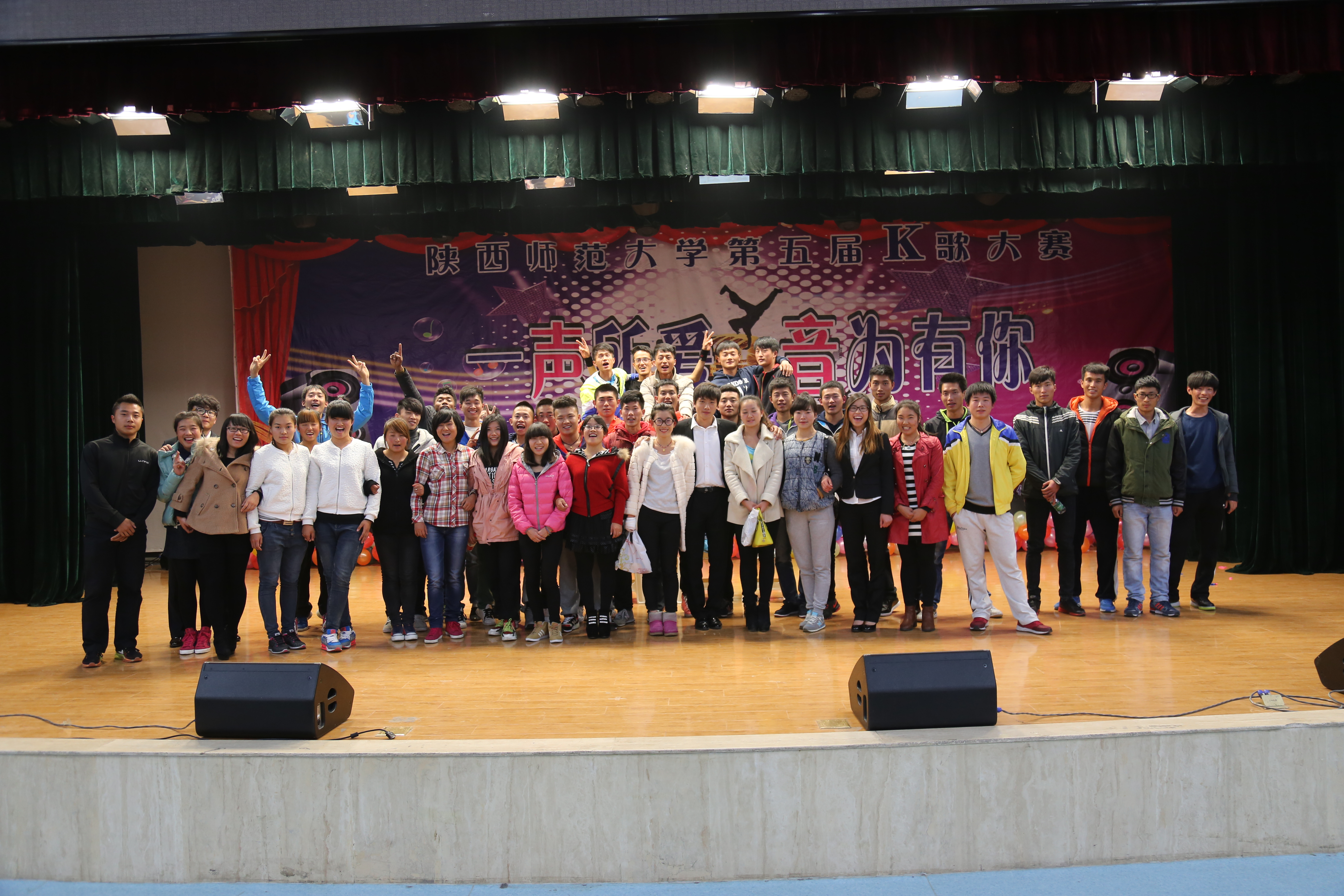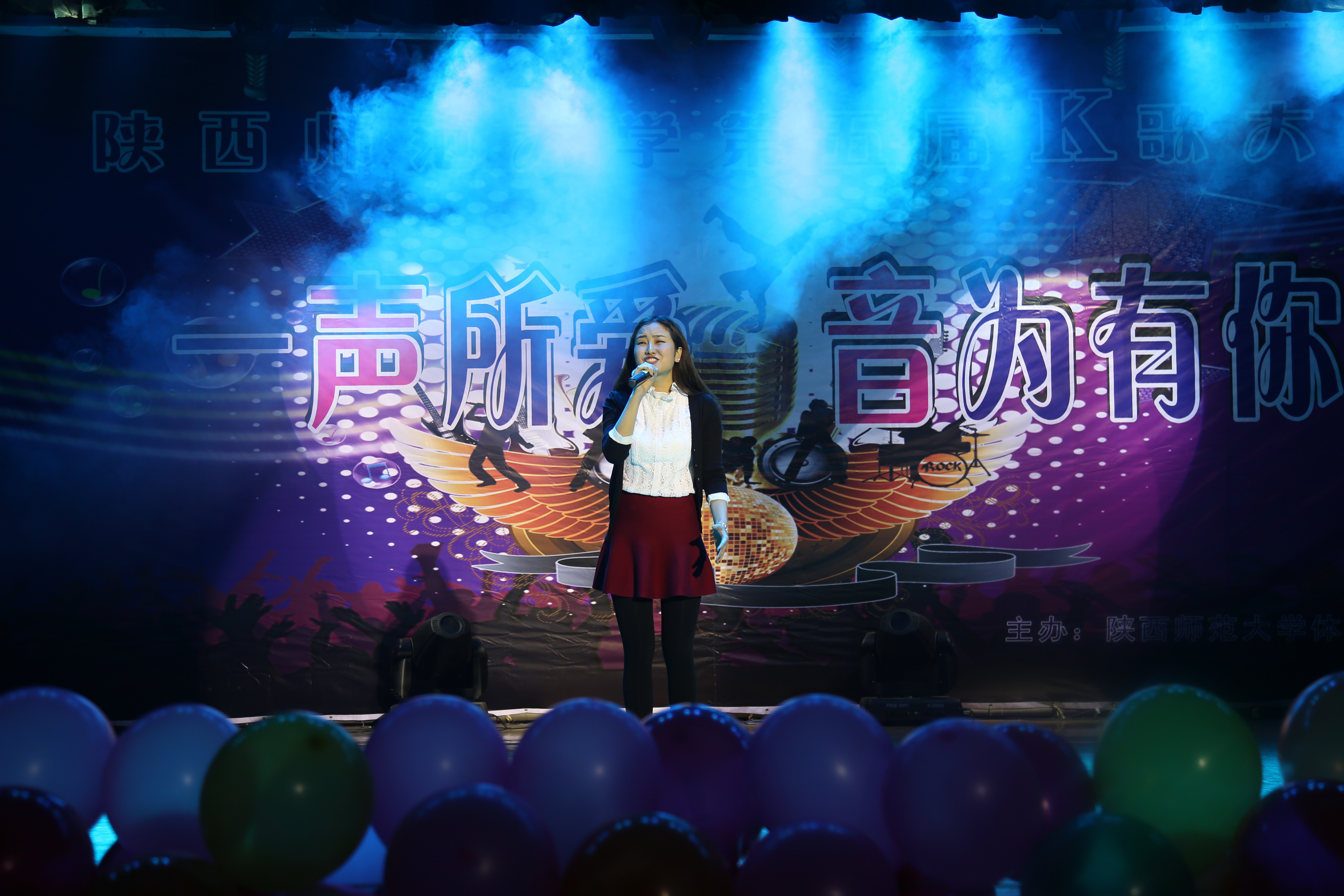 初寒十一,秋风瑟瑟,陕西师范大学第五届k歌大赛于2014年11月9日晚七点整在新勇学生活动中心二层西侧剧场拉开帷幕。经历了半个多月的角逐,共有十六位选手从100多名报名选手中脱颖而出,拿到了今天决赛的入场券。应邀出席本次活动的嘉宾有校团委副书记祁斌业老师,新闻与传播学院党委副书记刘洪超老师,体育学院党委书记王海彬老师、党委副书记朱海荣老师,体育学院辅导员:李钊老师、樊岫珊老师和党琳琳老师以及各学院学生会主席。担任本场比赛的评委有音乐学院王宏亮老师和上一届k歌大赛冠军于良同学。