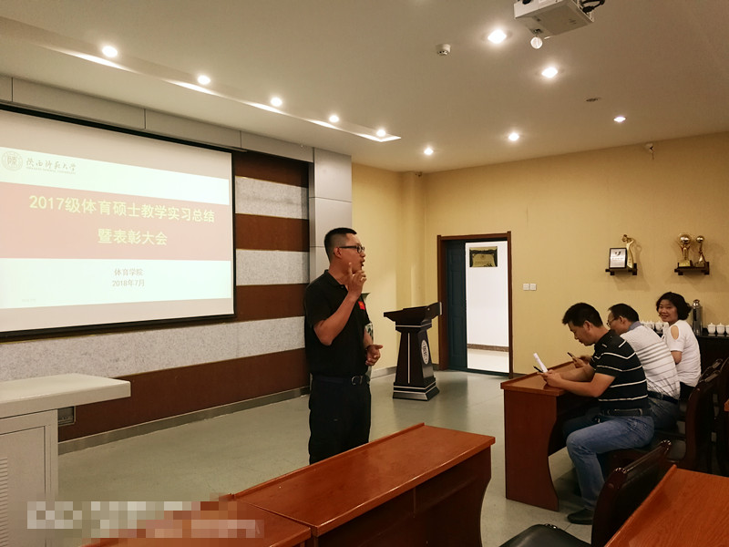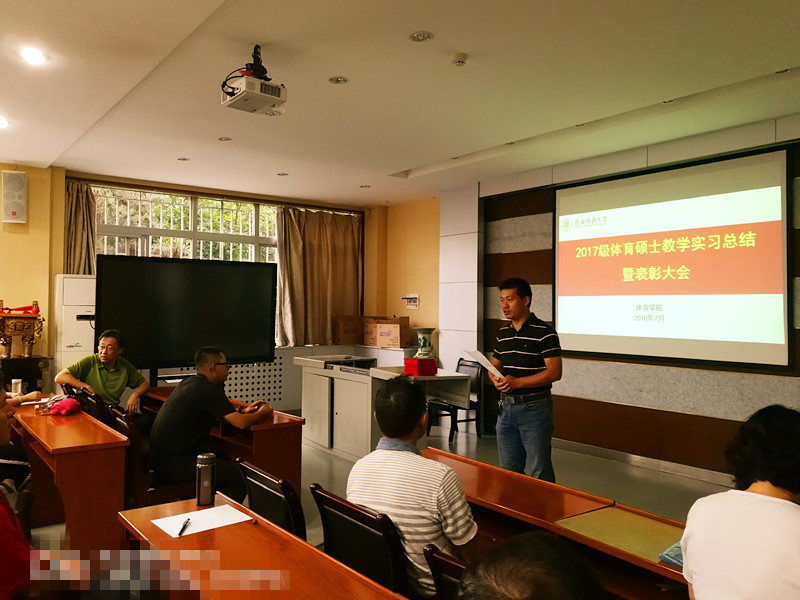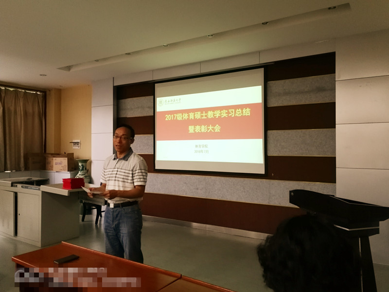7月3日上午,在体育学院多媒体报告厅召开了《2017级体育硕士教学实习总结暨表彰大会》。学院史兵院长、石海燕书记、万炳军副院长、张婧副院长、黄聪教授、池爱平教授、何世杰副教授、陈丽霞副教授、文艺老师、蒋荣丽老师等学院教师、实习单位教师代表以及全体2017级体育硕士实习生参加了会议。会议由万炳军副院长主持。会议内容包括教学实习工作总结及表彰两部分。