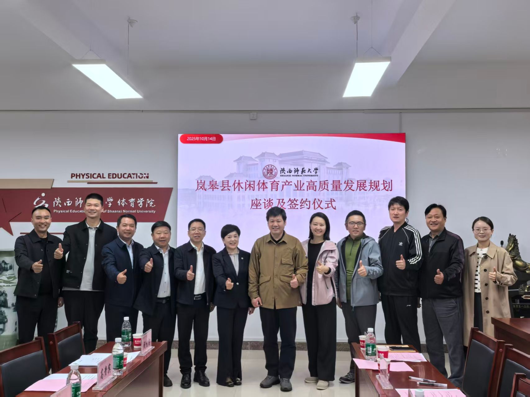 2025年10月14日,岚皋县休闲体育产业高质量发展规划座谈及签约仪式在体育学院会议室举行。岚皋县副县长伍玉兰,岚皋县教育体育局局长石有新、副局长高贵宾、体育股股长席猛以及工作人员吴开朋作为岚皋县代表参会,体育学院院长万炳军、副书记王一喆、副院长郑传锋、副院长刘芳以及教师代表赵国炳参会。体育学院驻岚皋县四季镇天坪村干部闫生忠主持会议。